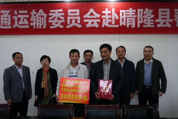 |     為積極響應(yīng)寧波市質(zhì)量安全監(jiān)督站為貴州山區(qū)兒童捐款修橋的倡議,4月22日,寧波市交通運(yùn)輸委、寧波市交通工程質(zhì)量安全監(jiān)督站,以及包括我公司在內(nèi)的寧波5家交通建設(shè)、檢測(cè)、監(jiān)理公司一行13人走進(jìn)貴州晴隆縣,深入了解晴隆縣交通基礎(chǔ)設(shè)施的相關(guān)情況。     據(jù)了解,新洋村的孔獨(dú)橋是連接紫馬村與新洋村的便捷通道,擬建橋長(zhǎng)約25米,寬4米,投資40余萬元,由于該橋未修建,目前,新洋村230余名學(xué)生上學(xué),馬攏、三躍、鹽井、新洋2500余名村民趕集紫馬需走河道通過。如遇雨季,村名們只能繞道2公里才能上學(xué)或趕集。屯上村的團(tuán)坡橋也存在同樣的問題,該橋是由群眾自發(fā)集資21萬元修建,由于橋面未進(jìn)行設(shè)計(jì),每逢大雨,橋孔滿足不了泄洪需求,河水直接從橋面瀉過,給學(xué)生上學(xué)和群眾出行帶來了嚴(yán)重的隱患。            為改善晴隆縣村民出行條件,我公司偕同寧波5家交通建設(shè)、檢測(cè)、監(jiān)理公司,響應(yīng)寧波市質(zhì)量安全監(jiān)督站《為貴州山區(qū)兒童捐款修橋的倡議書》的號(hào)召,共捐助款項(xiàng)人民幣80萬元。其中,我公司捐贈(zèng)人民幣30萬元,用于支援晴隆縣紫馬鄉(xiāng)農(nóng)村公路橋梁建設(shè)。總經(jīng)理方繼偉表示,“作為國(guó)有企業(yè),我們至始至終注重社會(huì)責(zé)任的實(shí)踐,看到這么多兄弟姐妹還這么艱苦,我們能努力為他們做一點(diǎn)點(diǎn)事情,義不容辭!”   捐贈(zèng)現(xiàn)場(chǎng)
